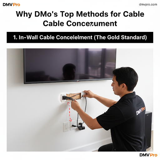 Don’t let unsightly cables detract from your stunning setup! Hiding your TV cables isn’t just about appearances; it also creates a safer environment by preventing tripping hazards and makes your entertainment area feel more organized and sophisticated. At DMV Pro, we specialize in making those cables disappear. Here’s our guide to achieving a clean, professional look.